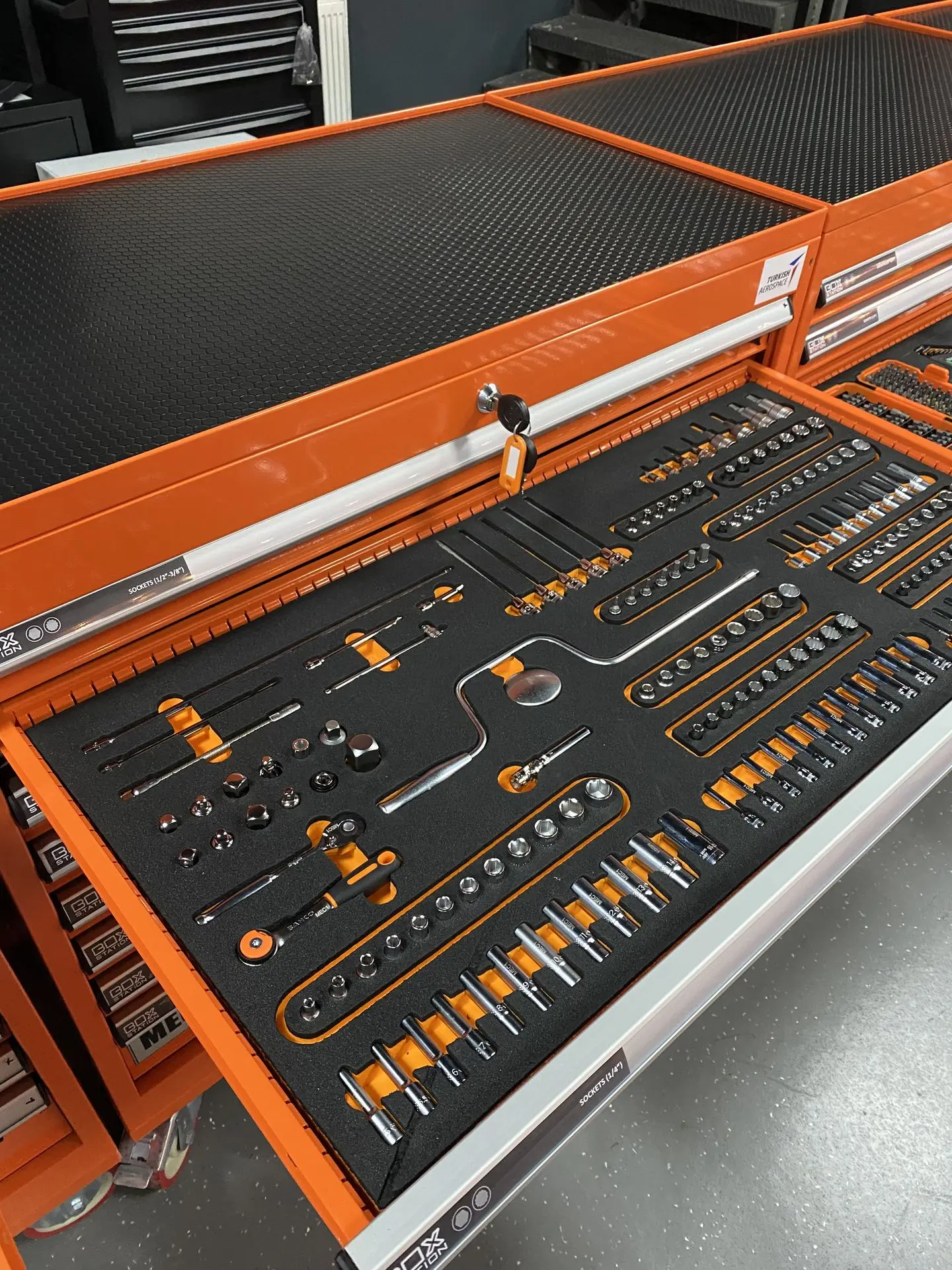 Savunma sanayiinde hata payı yoktur. Box Station, askeri tesislerde, bakım üssü alanlarında ve saha operasyonlarında kullanılan ekipmanların düzenli, güvenli ve taşınabilir biçimde saklanması için geliştirilmiştir.